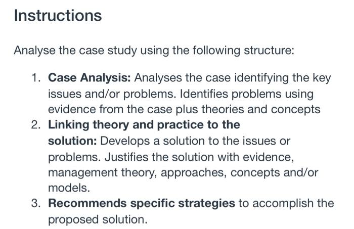 Solved Instructions Analyse The Case Study Using The Chegg Com